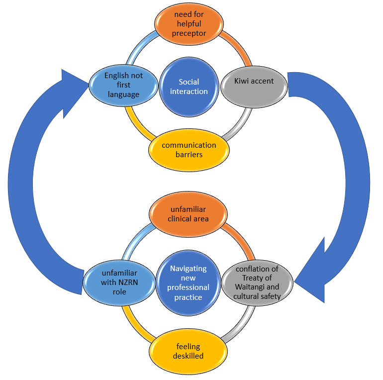 The aims of this study were to understand how IQNs perceived the relevance and usefulness of the competence assessment programme to their clinical and cultural integration into the Aotearoa New Zealand nursing profession. The findings were heavily influenced by a sense of social dissonance arising from the participants’ confusion and unfamiliarity with the social and professional settings in Aotearoa New Zealand as depicted in Figure 1.